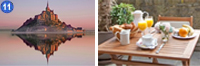 朝は少し早起きをして、静かで静かで幻想的なモンサンミッシェルを楽しんでみるのもおすすめです。朝食を食べたあとはまだ人通りの少ないお店でゆっくりお買い物。昼間の人混みが嘘のよう。 城壁の上にある島内をひと回りできる通りや迷路ような小道もあって観光客の少ない朝の時間は、いろいろな発見があります。 |