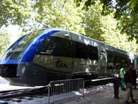 5月17日〜6月15日の1ヶ月間、シャンゼリゼに32両の電車が展示されています。なんと6月1日(日)には実際に道路にひかれた線路を運行しました。フランス国鉄”150周年”を記念するエキスポだそうです。
