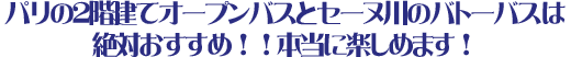 あまり時間のない急いだパリ観光をする方には、オープンツアーやバトーバスは、