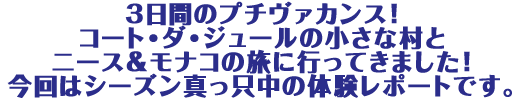 今回はシーズン真っ只中!一番華やかな風景や景色をお伝えすべく、3日間のプチヴァカンスに出かけてきました。