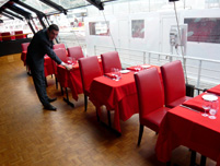 席は、船の入口でご案内してくれます。バトームッシュは、メニューによって料金が違うだけで、