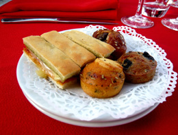 一口チーズハムサンドみたいなのと、 オリーブのブリオッシュなどでした♪ おいしい♪
