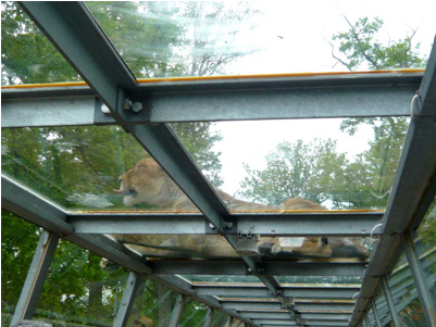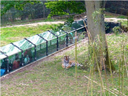 トラのテリトリーを、ガラスのトンネルを通って歩いて見学できるんです♪