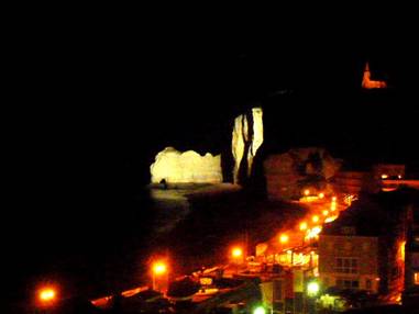 写真の腕が悪くてすみません・・・(涙)!崖と教会がキレイにライトアップされて、