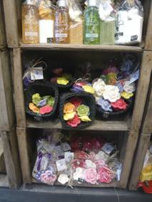 バラの他にも、動物さんたちの小さい石鹸や、天使の石鹸、もちろん普通の形のいろいろな香りの石鹸が、店内にギッシリ!!