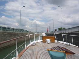 セーヌ川と違って、そんなに頻繁にたくさんの船が通るわけではないので、15分くらい、勝手に舵をとらせてくれました!!!!!