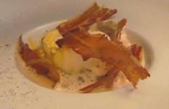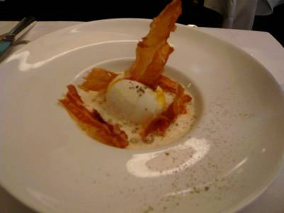 半熟タマゴにベーコンと栗のエマルジョンソースです!