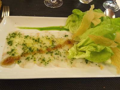 私の前菜は、LANGUSTINE EN CARPACCIO(手長エビのカルパッチョ)