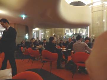 座席の空間の狭いパリのビストロに比べて、ここは広々!!食べる前から、