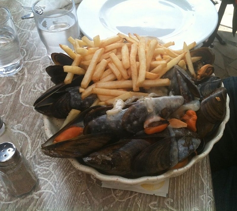 ムール貝の白ワイン蒸し煮とフライドポテト