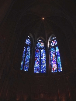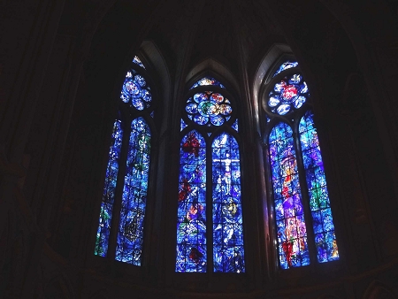 戦争で建築当時のステンドグラスは壊され、代わりに1974年にシャガールが、