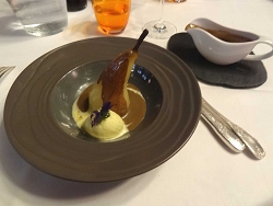 洋梨とアイスにチョコレートソースです。
