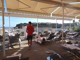 プールの外は、テラスになっていて、モナコ宮殿を見ながら、デッキチェアでゆっくりできます(^_-)-☆ |