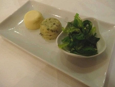 フォカッチャやパン、オリーヴオイル、バター、海草バターと、、、 |