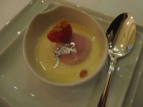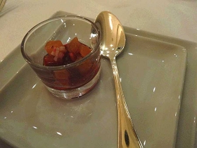 あっという間に、デザートの前のデザートとして、お口直しのシャーベットが出てきました!