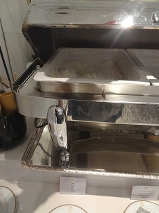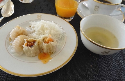 おかずは、シュウマイ2種類。お米は、残念ながら日本米ではないのですが、