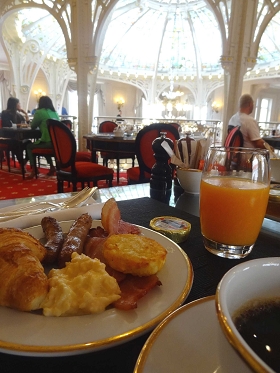 エッフェルのガラス張天井を見ながら、優雅なブレックファーストでございます♪ |
