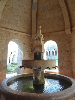 こちらが六角形の屋根の下にある洗手礼場。修道士たちが手を洗うことはもちろん、ヒゲを沿ったり、日常生活に使っていた場所。