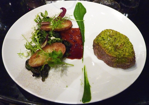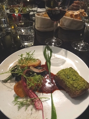 そしてメインは、 ENTRECOTE DE BOEUF DESOSEE EN PERSILLADE, POILEE DE LEGUMES DE SAISON ET JUS MOUTARDE・・・