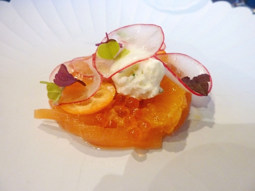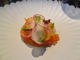 さっぱりしてて、ラディッシュとイクラの歯ごたえがカルパッチョ