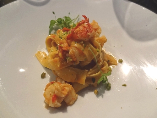 2つ目の前菜は、 TAGLIATELLES FRAICHES MAISON ET HOMARD A LA TRAPANESE(PESTO SICILIEN A BASE DE TOMATE, BASILIC, RICOTTA ET PISTACHES)・・・オマールのトラパニ風ペスト自家製タグリアッテーレ!