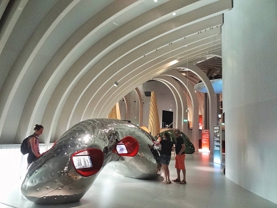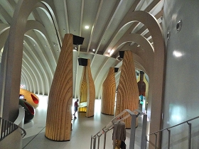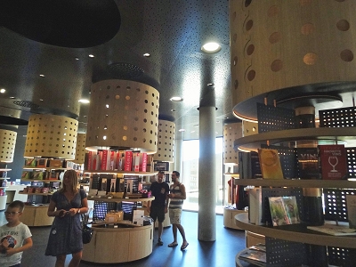 かなり斬新なデザインの外観ですが、これはワインのカラフをイメージしてる?グラスに流れ込むワインの流れをイメージしてる?ワインの樹のうねり具合を表現してるとか?!などと言われていて、ボルドー市中心の端っこにありますが、かなり目立つ建物です!