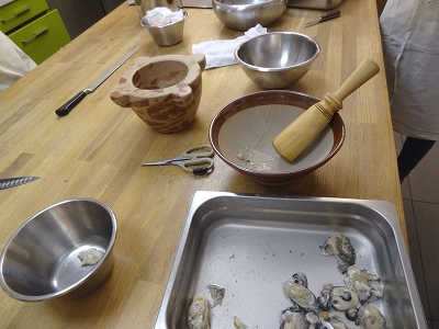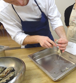 バスチアン先生「今日は、“3つ星料理”なので、牡蠣の最も美味しい部分のみを使います!普通だったら、全部使っちゃいますけどね!」