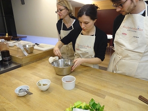 使用するハーブ、オリーヴオイルなどを先生も一緒に味見して、 素材を知ります。