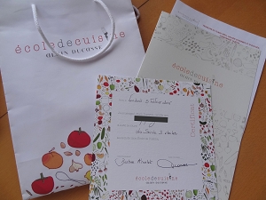 そして、エコール・アランデュカス特製のエプロン、レッスン修了書、レシピを お土産でいただきました!!