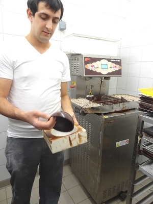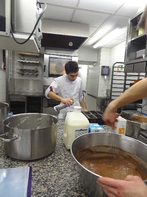 この日は、ショコラ・クレームブリュレと、スポンジケーキの準備をしていました。