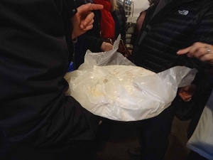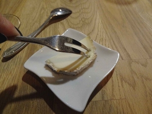先ほど同様、匂いの違いを確認して、さらに指でチーズを切って、中の香りも楽しみます。 |