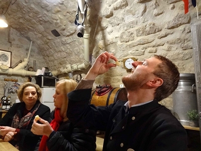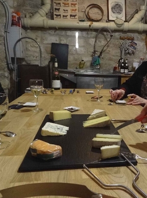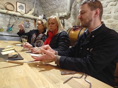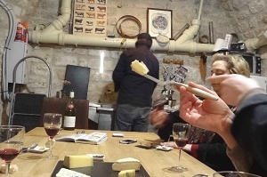 マレ地区にあるチーズ屋さんのカーヴで、試食&試飲をさせてくれるんです♪