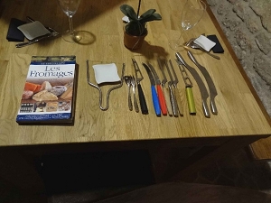 チーズによって、切り方、切るナイフも違うということで、テーブルには、こんなにナイフが用意されていました! |