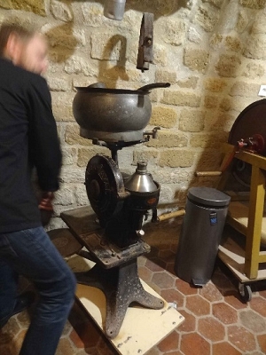 まず、カーヴに置いてあるバター&クリーム製造機を説明してくれました。今は、使ってないそうですが、こちらのチーズ屋さんが農家を営んでいたときに、使っていた機械だそうです。