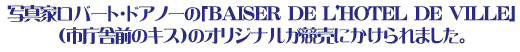 昨夜(4/25)、写真家ロバート・ドアノーの有名な「BAISER DE L'HOTEL DE VILLE」