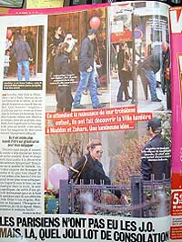 雑誌によると(VOICI、CLOSER参照)、2月5日の朝、二人はEMILE ZOLAに出るマルシェに出かけ、そこで、リンゴやカマンベールを購入、近くのパン屋でクロワッサンを買った後、VIOLET通りにあるスーパー"8 A HUIT"で、髭剃り(MACH 3)、スープ、食パンなど44ユーロ分の買い物をしたそうです。