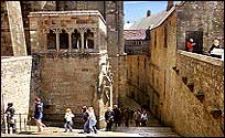僧院は966年にベネディクト派のものとして設立。13世紀初めには「ラ・メルヴェイユ」と呼ばれる3階建ての教会が増築され、ゴシック建築の傑作と称される。その後、百年戦争、フランス革命と時代の波に巻き込まれながらも、現在はユネスコ世界文化遺産となる。