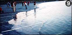一望でき、砂の入り混じった遠浅の海はブルーグレーや薄茶色の行筋もの層をなし、情趣に富む風景である。